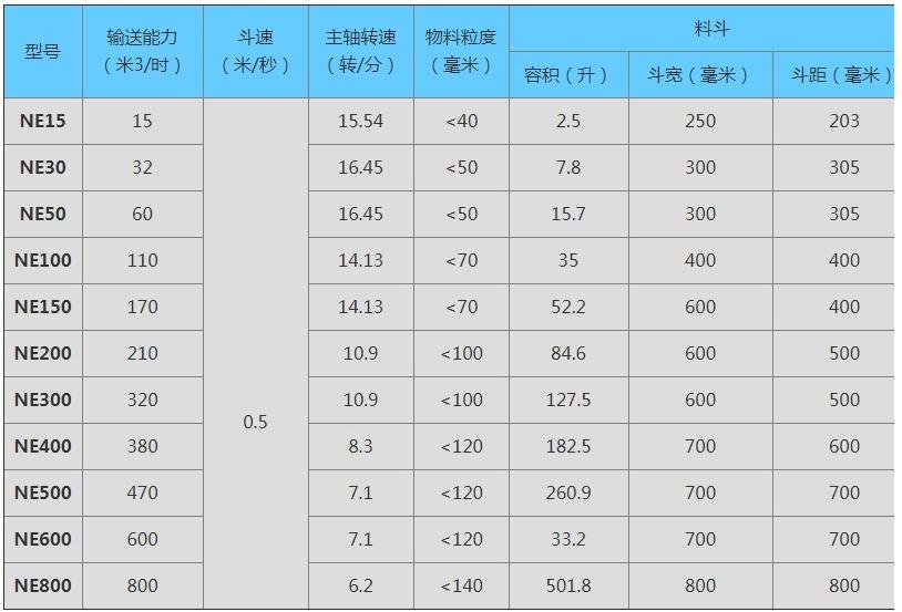 NE斗式提升機(jī)參數(shù)表如下:
